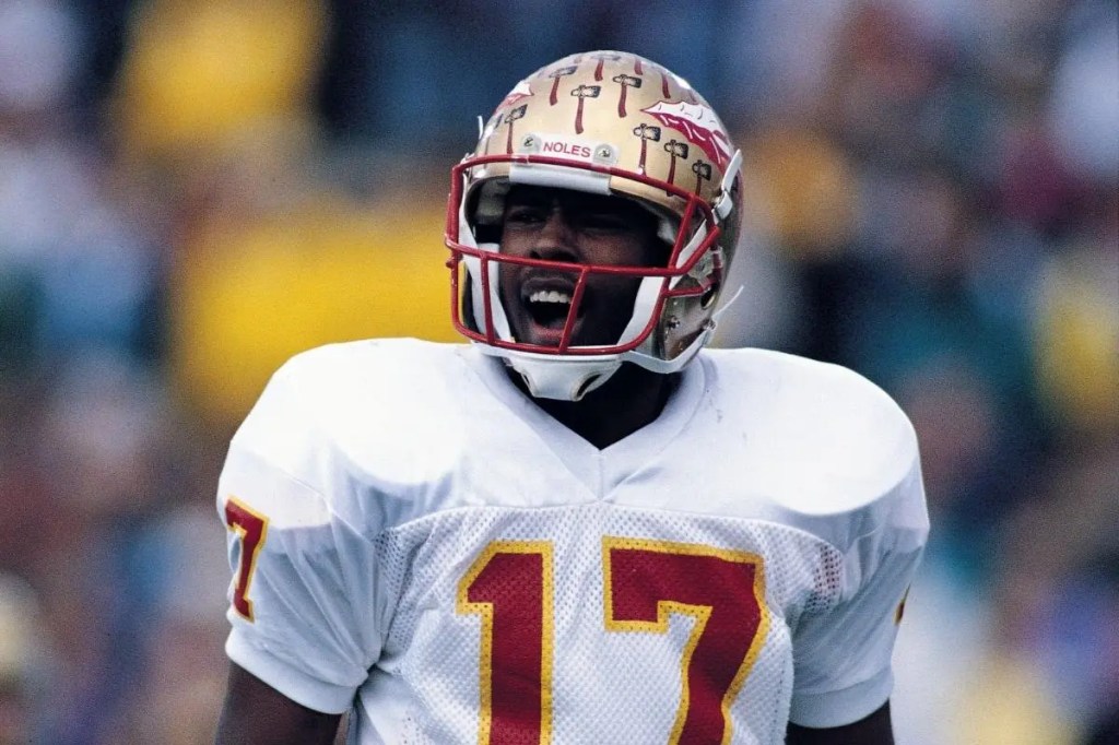 We go from the quarterback for the team of the early 2000s to the quarterback for the team of the early 1990s, Charlie Ward. Florida State was a college football powerhouse in the 90s and Ward was a big reason why. Following in the footsteps of fellow multi-sport Florida State star, Deion Sanders (who also ran track in college), Ward was also the starting point-guard for the Seminoles basketball team. It seemed like FSU was always playing a big football game back then and Charlie Ward was always playing lights-out. He would show up with his helmet dripping with more Tomahawks than you would see at Fulton County Stadium, decked out with Nike Air Veer cleats and proceed to throw for 300 yards and rush for 100. He was also the best player to use in Bill Walsh College Football on the Sega Genesis. Ward won the 1993 Heisman and led FSU to the National Championship. Then he got drafted by the Knicks and had a very solid 12-year NBA career.